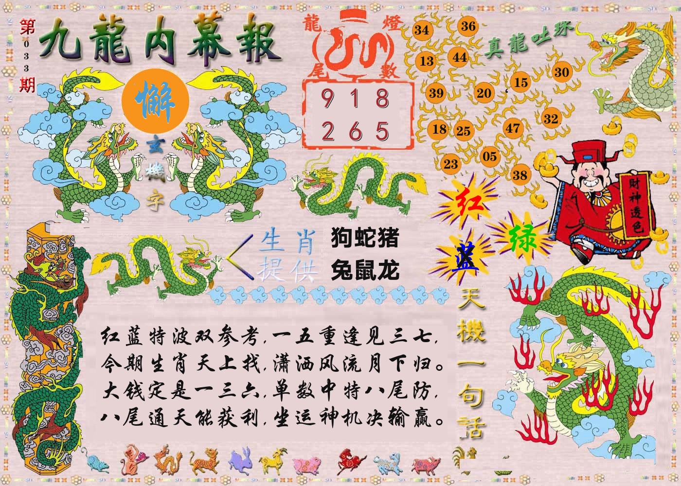 033期:【一绿一红生肖出,绿波单数凑热闹