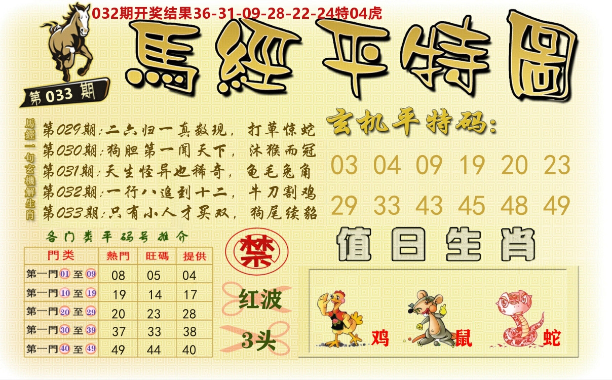 033期:单双中特【单单单】开:??准